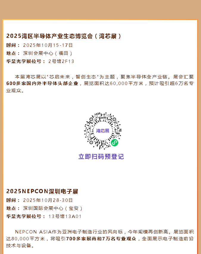 十月份展会预告,双展来袭!华显光学诚邀您共赴科技盛宴