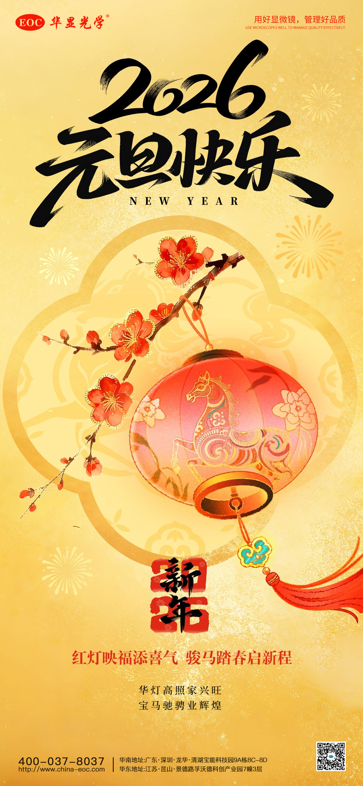 新元肇启,万象更新。当时光的指针划过2025的最后一页,我们怀着感恩与期待,迎来了充满希望的2026年。在此辞旧迎新的美好时刻,深圳市华显光学仪器有限公司向所有关心、支持我们的新老客户,致以最诚挚的感谢和最美好的新年祝福!